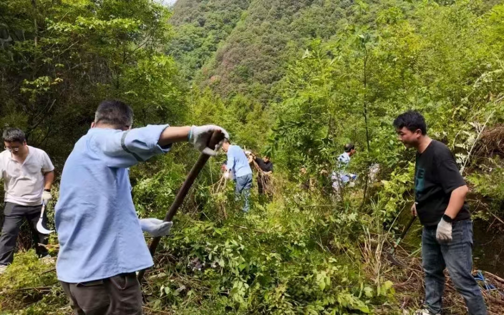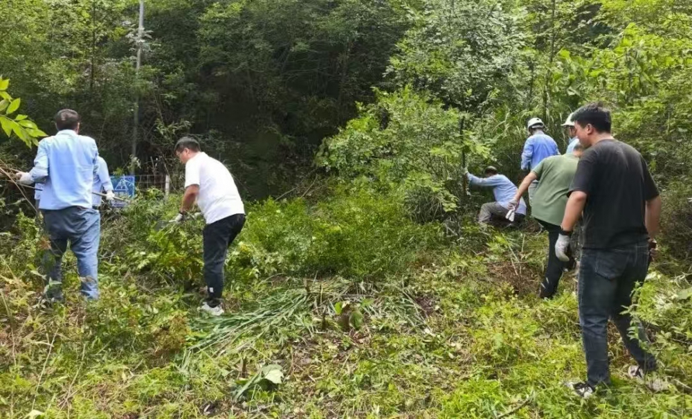 因長(zhǎng)期停用,炸藥庫周邊雜草叢生、灌木密布,部分區(qū)域雜草高達(dá)兩米,不僅影響安全巡查,還存在多種風(fēng)險(xiǎn)?,F(xiàn)場(chǎng),職工們手持割草機(jī)、鐮刀、鐵鍬等工具,分工協(xié)作:年輕職工主動(dòng)承擔(dān)割草、砍伐重任,老員工則負(fù)責(zé)理碎石、搬運(yùn)雜物,黨員先鋒們更是一馬當(dāng)先,帶頭攻堅(jiān)復(fù)雜區(qū)域。盡管汗水浸透工裝,雙手磨出水泡,但無人喊苦叫累,展現(xiàn)出強(qiáng)大的團(tuán)隊(duì)凝聚力。